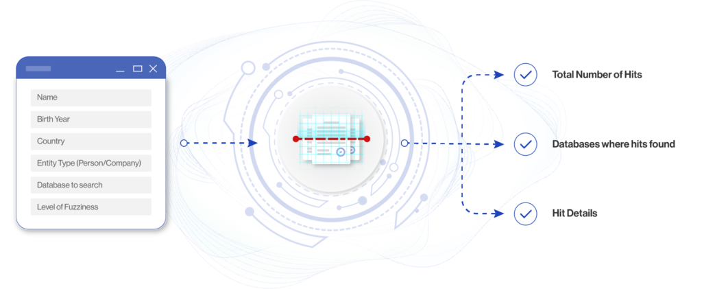 Our API automates the AML screening process, removing the need for manual scanning of lists. This reduces time, effort, and human errors