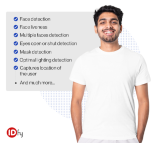 Step 4:Customer Authentication – Face and liveness checks are conducted with a click of a selfie. Liveness APIs can easily detect fraudulent attempts like the submission of a photo printout or a real-looking 3D layered image. This ensures that the individual behind the camera is indeed present and actively participating in the verification process.
