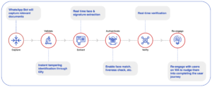 Customer Experience (CX): The entire KYC happens on WhatsApp – a UI that the customer is familiar with. This makes them feel right at home throughout the process.